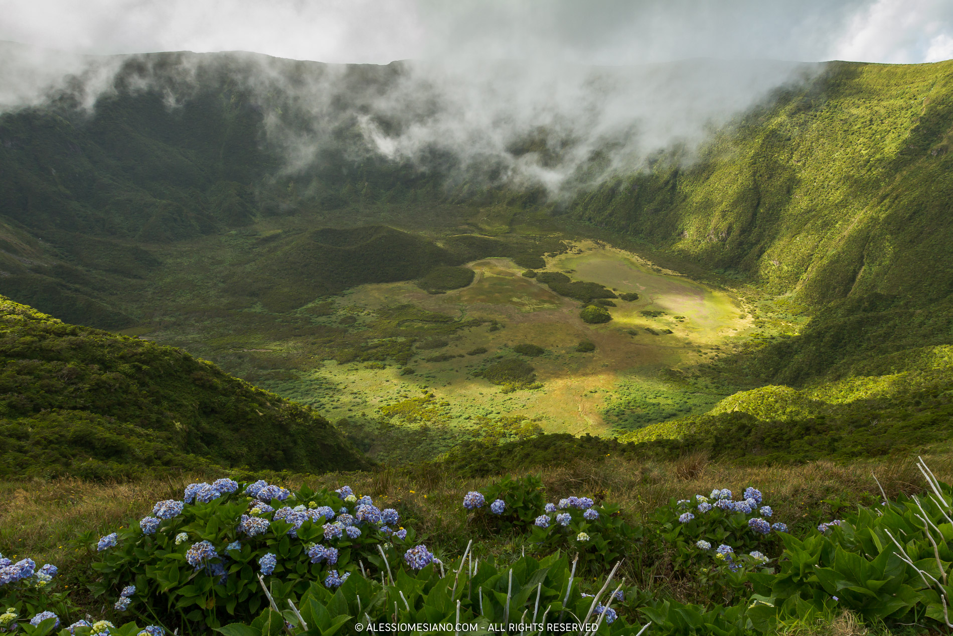 The archipelago of Azores (Açores in Portughese) is an autonomous region of Portugal placed in the North Atlantic Ocean divided into three groups: Western Group (Corvo and Flores), Central Group (Faial, Graciosa, Pico, São Jorge, and Terceira) and Eastern Group (Santa Maria and São Miguel).