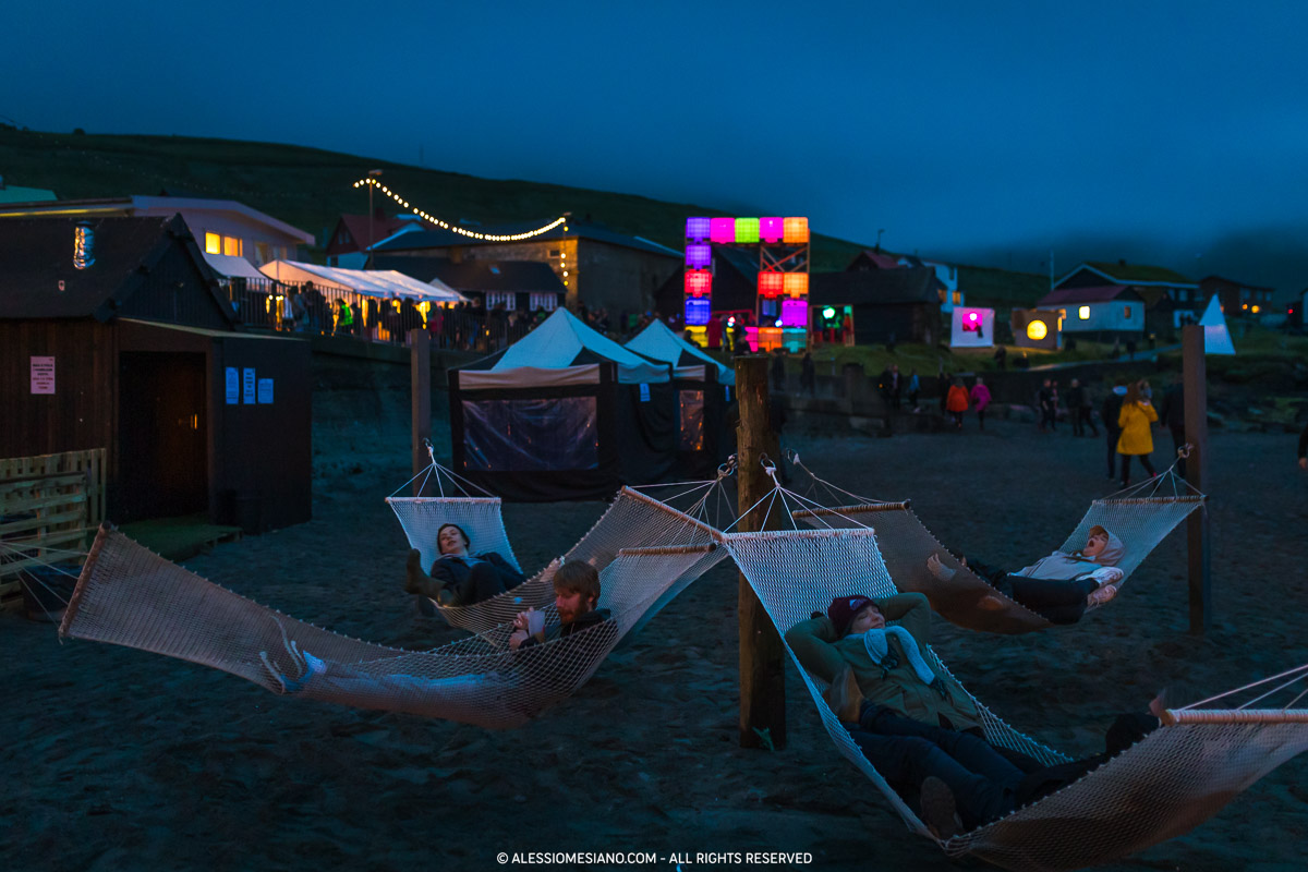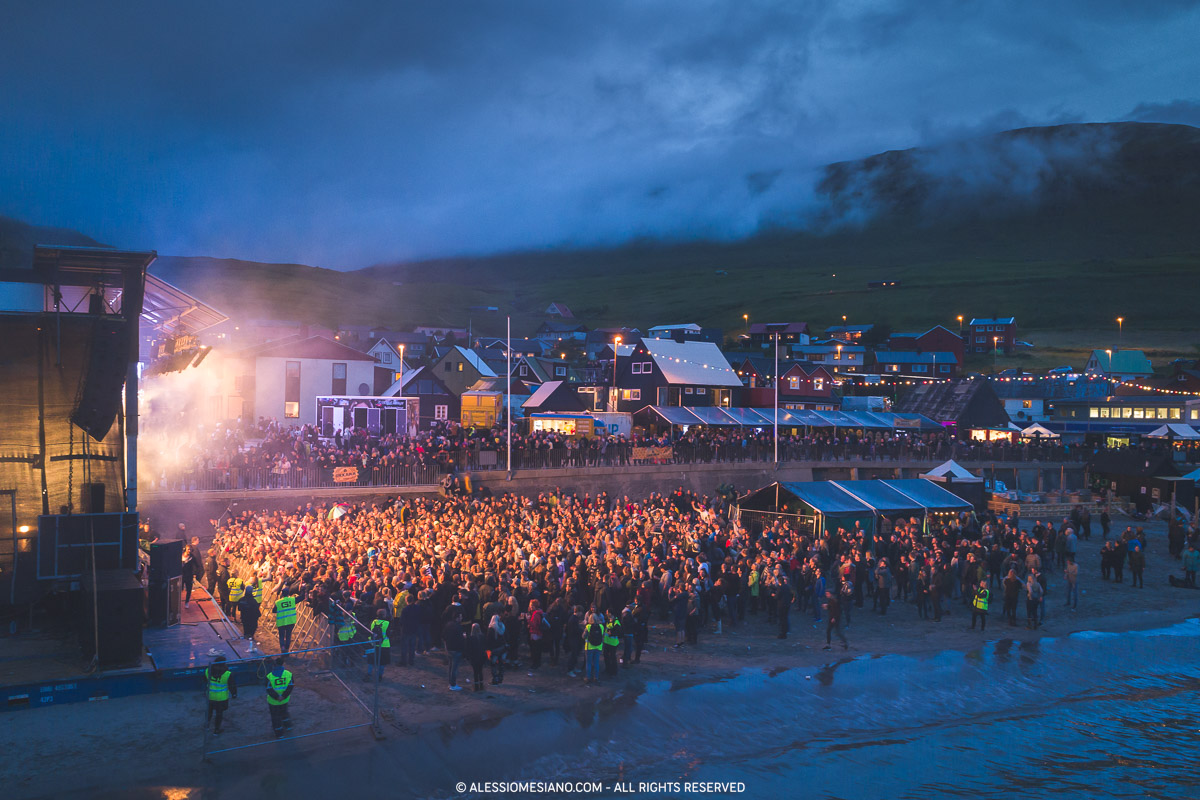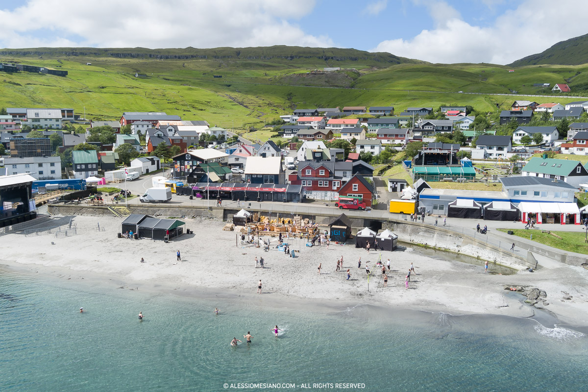 Every year in July, for three days, locals and foreigners meet in the village of Syðrugøta at its tiny sandy beach at the end of one of the many fjords of the archipelago.